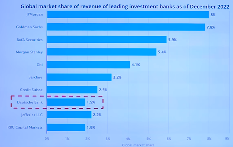 DeutscheBank chiếm gần 2% thị phần doanh thu của các ngân hàng đầu tư toàn cầu năm 2022