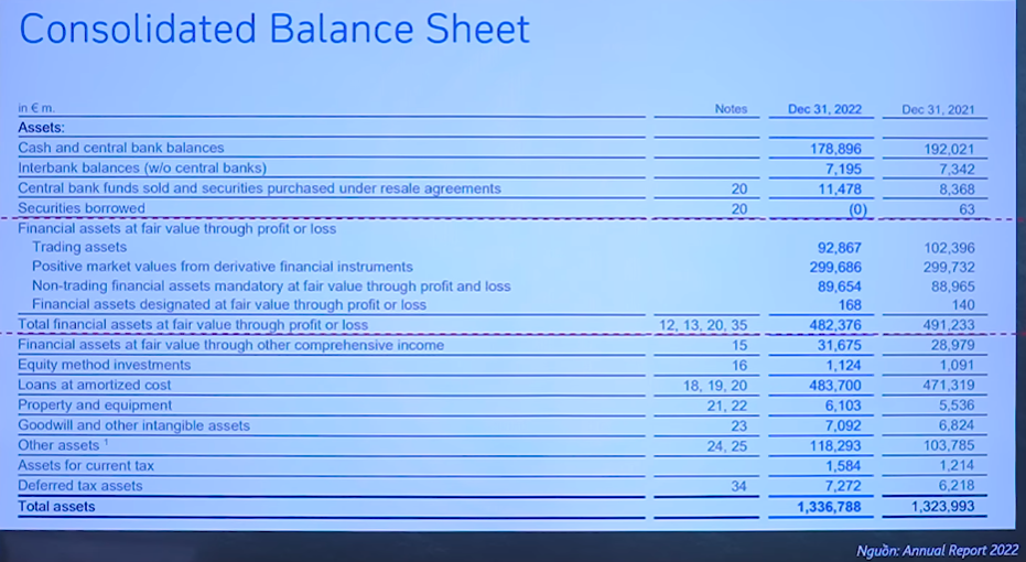 Điều cần quan tâm chính là khẩu vị đầu tư của ngân hàng này. Với thị trường tập trung của DeustcheBank – nơi mà lãi suất của các ngân hàng Trung Ương đang có xu hướng đẩy tăng cao thì chất lượng của tài sản là điểm rất cần được chú ý (đặc biệt tỷ trọng đầu tư vào phái sinh tương đối lớn)